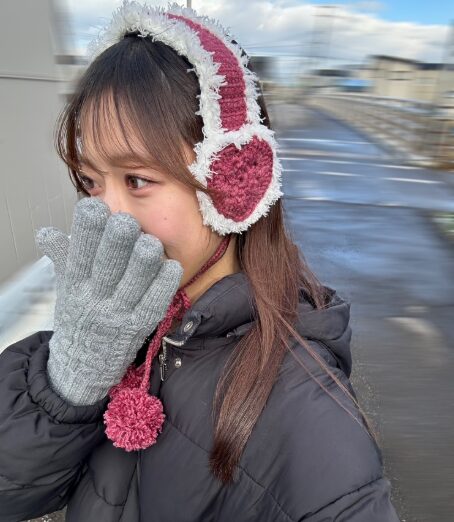 イヤーマフです。編み物が得意で、こうした作品も手作りしているそうですよ。